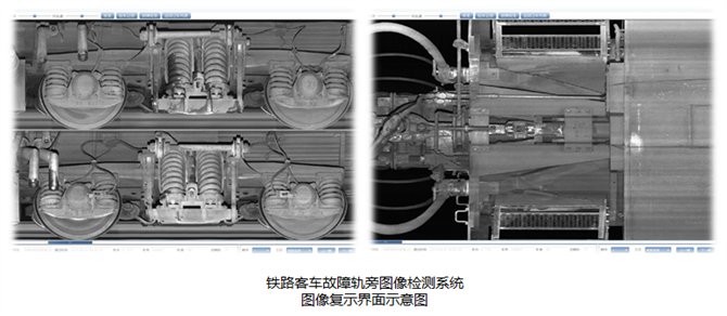 該系統(tǒng)是鐵路車輛運行安全監(jiān)控系統(tǒng)的重要組成部分,利用軌旁安裝的高速相機,檢測運行客車走行部、轉(zhuǎn)向架、制動部件、車端連接及車體下部懸吊件等可視部位圖像,實時傳輸至室內(nèi)監(jiān)測終端進行分析,并利用人工檢測發(fā)現(xiàn)運行車輛異常情況并報警。